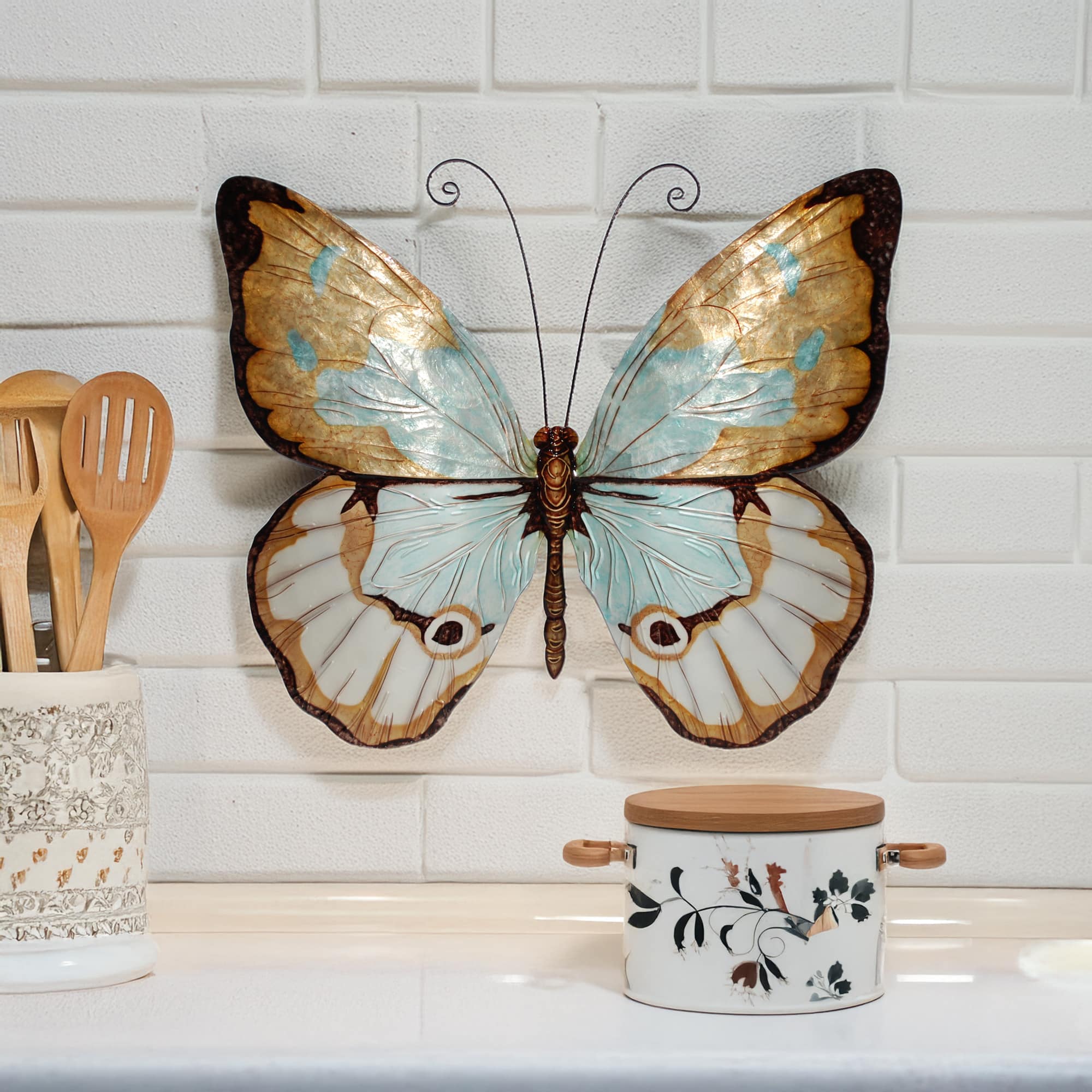 Butterfly Wall Decor Aqua And Gold