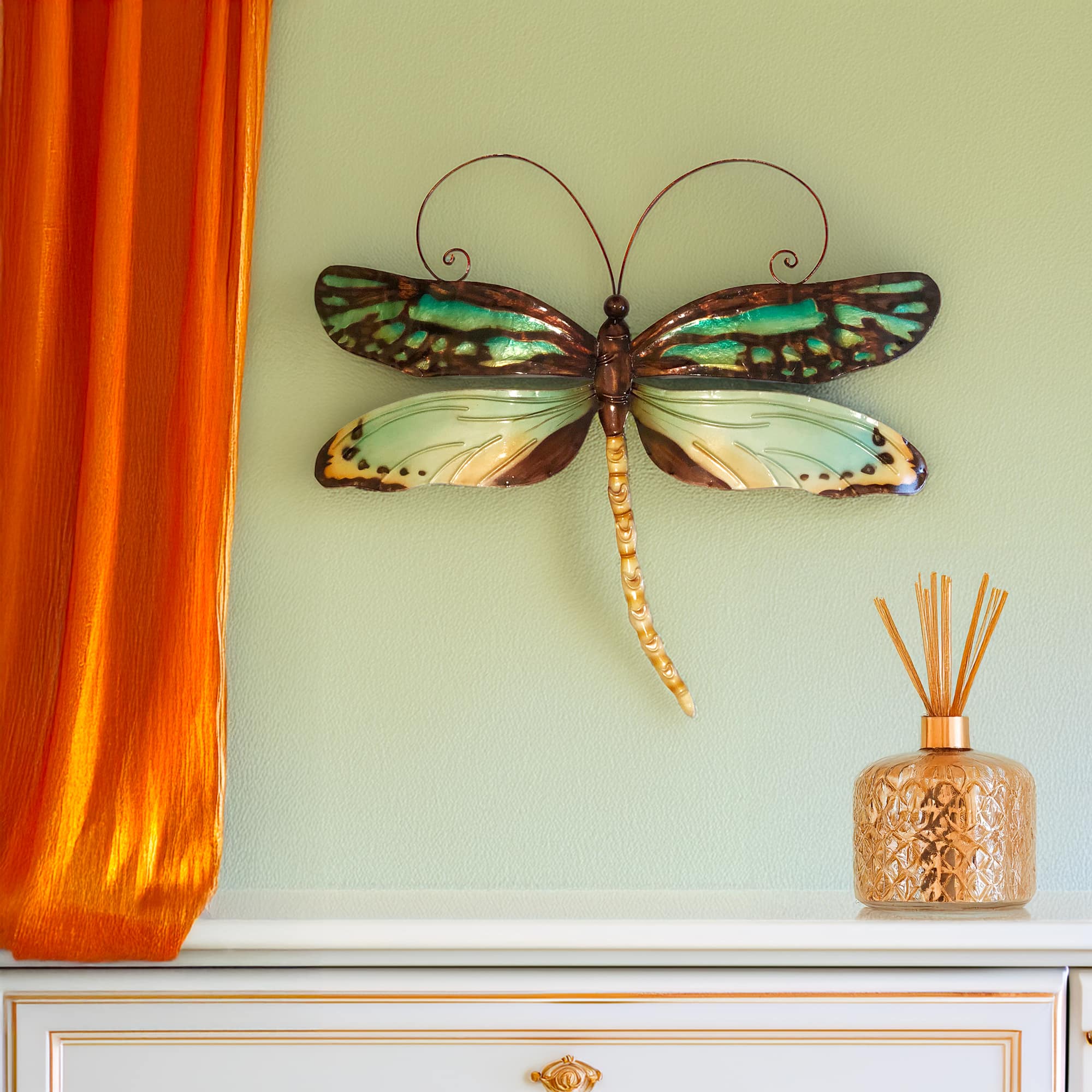 Using paints of various shades and different hues of yellow, this graceful dragonfly features an appearance of flowing honey on its upper wings. The lower wings diverge from the honey and are textured in a base white color with highlights of yellow. Stylish and elegant, this piece adds sophistication to the finish of any room, contemporary or traditional.