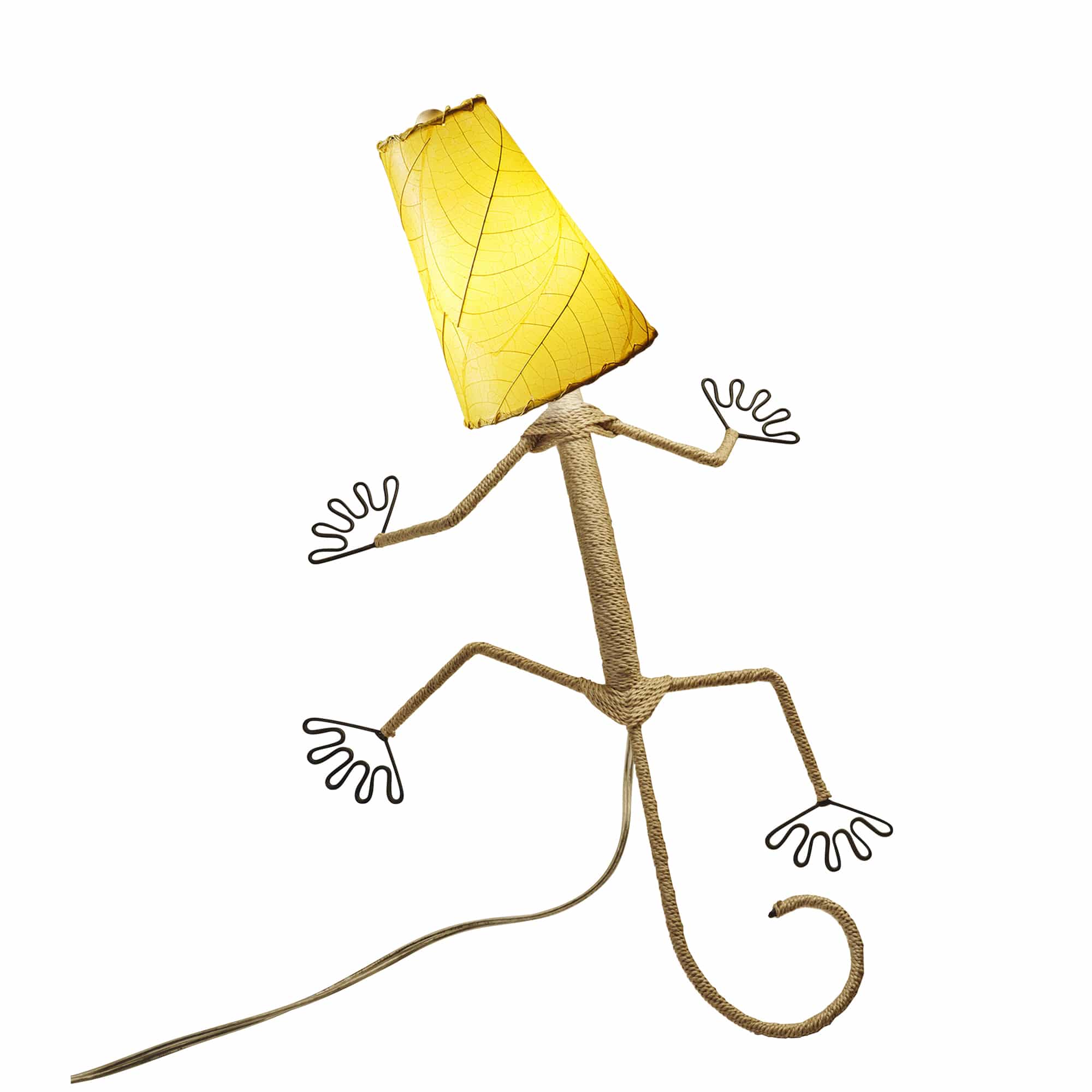The sculptural body is handcrafted from powder-coated wrought iron and tightly wrapped in natural abaca rope, forming the gecko’s animated pose. Flexible placement is easy with the included plug-in cord, making it a creative solution for spaces that need charm and soft lighting.