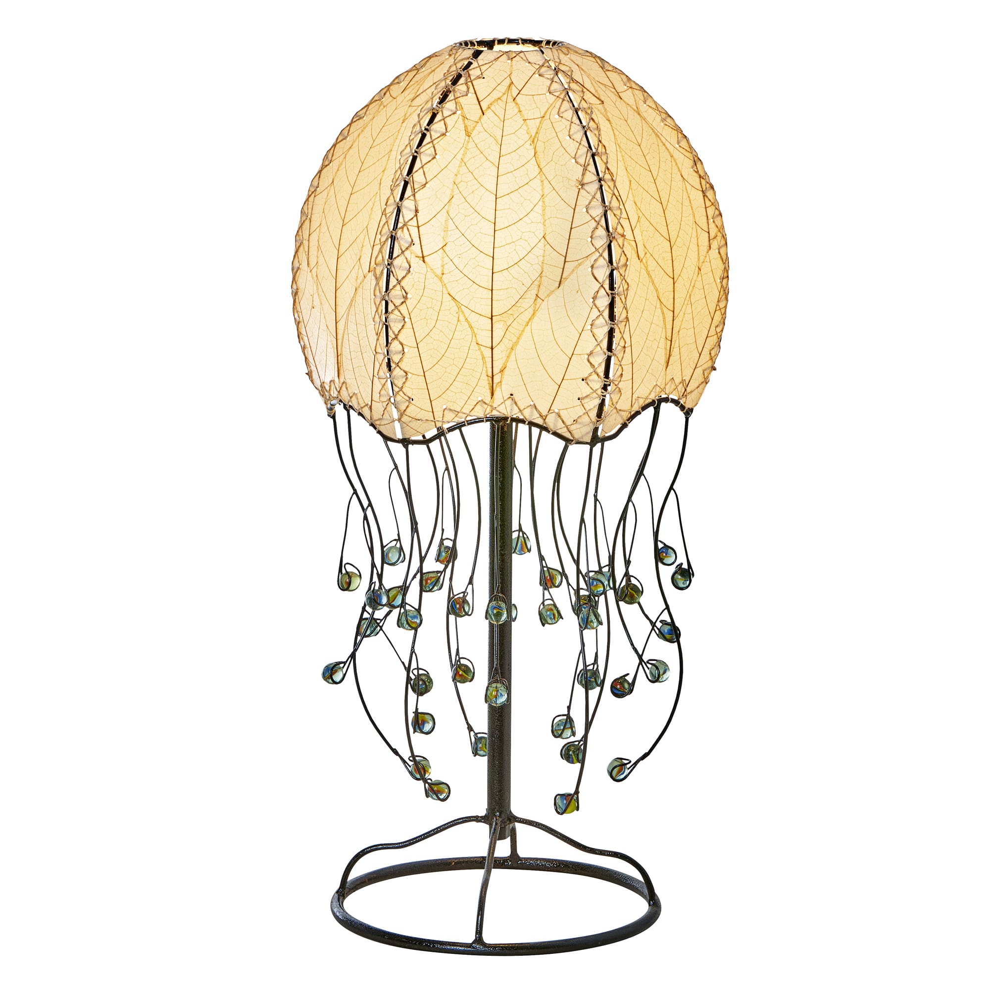 Some lamps spark curiosity. The Jellyfish Table Lamp invites wonder. Inspired by the drifting grace of ocean creatures, this sculptural piece blends natural beauty with playful imagination. The dome-shaped shade mimics a jellyfish’s body, while cascading wrought iron tendrils end in hand-blown glass beads—like bioluminescent stingers frozen mid-drift.