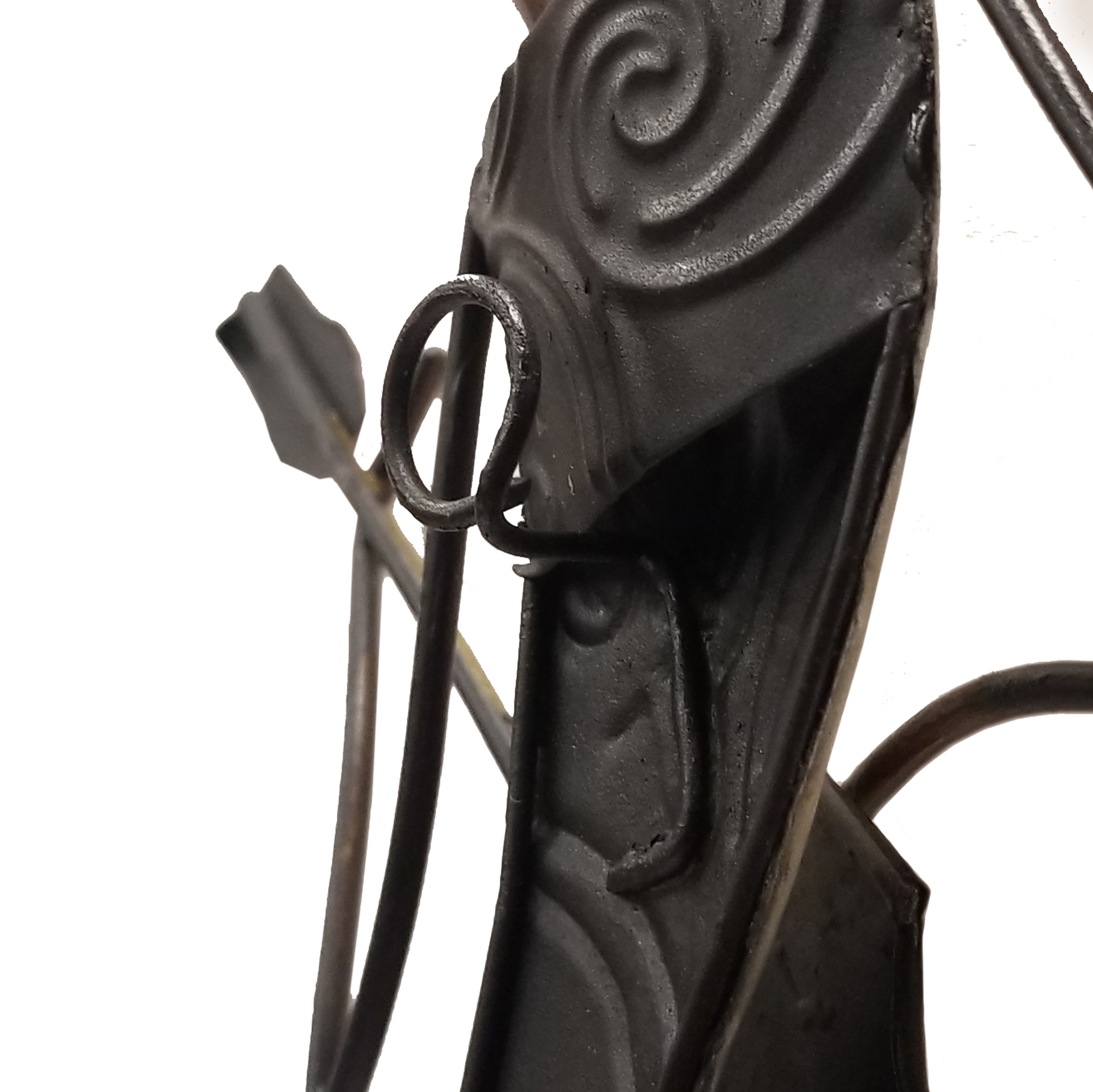 The frame of the Violin Player Wall Decor is created using tin, which is powder coated in a black finish. The frame is reinforced using wrought iron wire inner edge or outer edge. Capiz is an oyster shell and the primary purpose of the oyster is as a source of food. However, the by-product, the shell, can be used for decoration. Due to it being a natural material, the natural colors of the capiz can come through as tans and browns underneath the paint.