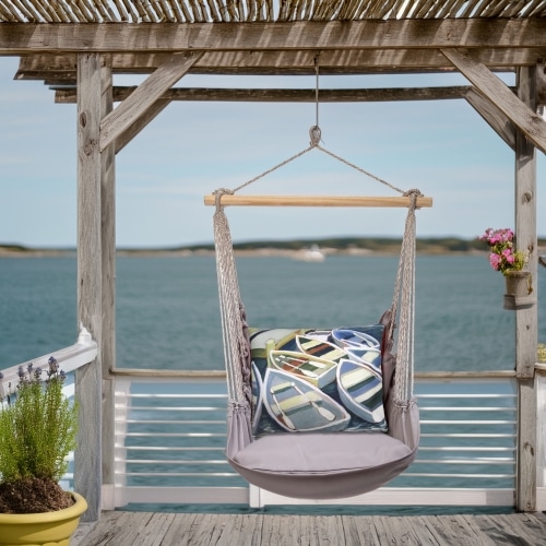 Envision a breezy corner of your yard where gray solid invites daydreams and gentle conversation. A Midnight Garden Lilies cushion adds its own personality, turning the swing into functional art. Hand-sewn from Sundure fabric that feels like cotton yet resists fade, mildew, and sudden showers, each set is built for real life outside so you can linger without fussing over the weather. A smoothly finished hardwood bar keeps the seat open and balanced, while durable hanging ropes clip up in moments and fold flat for off-season storage. The four-piece kit arrives ready to relax: swing seat, overstuffed 24×24-inch seat pillow, 19×24-inch back pillow, and a matching tote for easy travel or winter stow-away. Machine-washable and mood-lifting, it’s the quickest way to add a touch of crafted comfort wherever you hang it.
