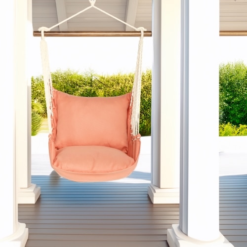 Imagine swinging into sunset hour with living coral catching the glow while friends lean in for one more story. A Vivid Flamingo Pink cushion adds its own personality, turning the swing into functional art. Hand-sewn from Sundure fabric that feels like cotton yet resists fade, mildew, and sudden showers, each set is built for real life outside so you can linger without fussing over the weather. A smoothly finished hardwood bar keeps the seat open and balanced, while durable hanging ropes clip up in moments and fold flat for off-season storage. The four-piece kit arrives ready to relax: swing seat, overstuffed 24×24-inch seat pillow, 19×24-inch back pillow, and a matching tote for easy travel or winter stow-away. Machine-washable and mood-lifting, it’s the quickest way to add a touch of crafted comfort wherever you hang it.