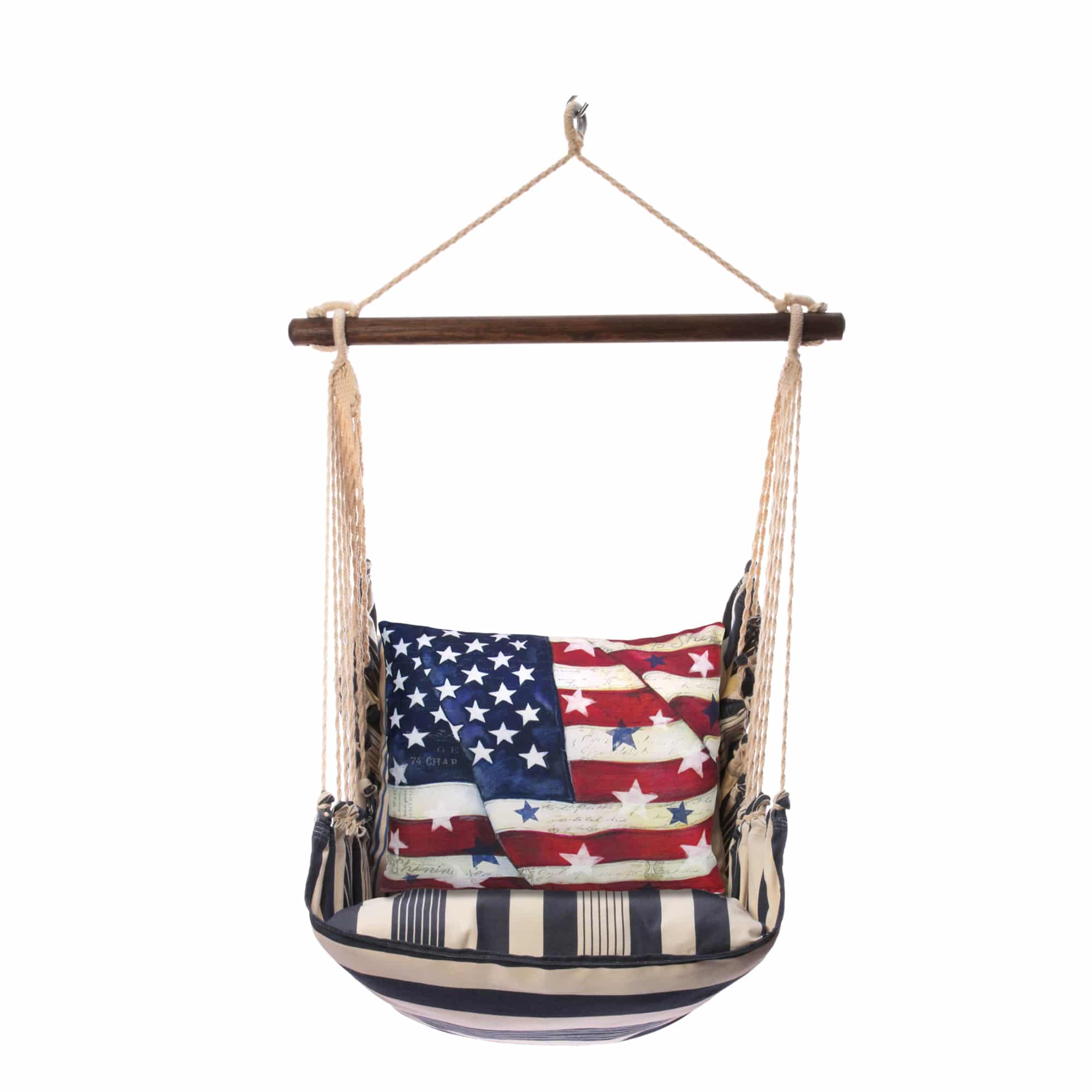 Think of weekend mornings when marina stripe turns the porch into a private retreat. A American Flag with Stars cushion adds its own personality, turning the swing into functional art. Hand-sewn from Sundure fabric that feels like cotton yet resists fade, mildew, and sudden showers, each set is built for real life outside so you can linger without fussing over the weather. A smoothly finished hardwood bar keeps the seat open and balanced, while durable hanging ropes clip up in moments and fold flat for off-season storage. The four-piece kit arrives ready to relax: swing seat, overstuffed 24×24-inch seat pillow, 19×24-inch back pillow, and a matching tote for easy travel or winter stow-away. Machine-washable and mood-lifting, it’s the quickest way to add a touch of crafted comfort wherever you hang it.